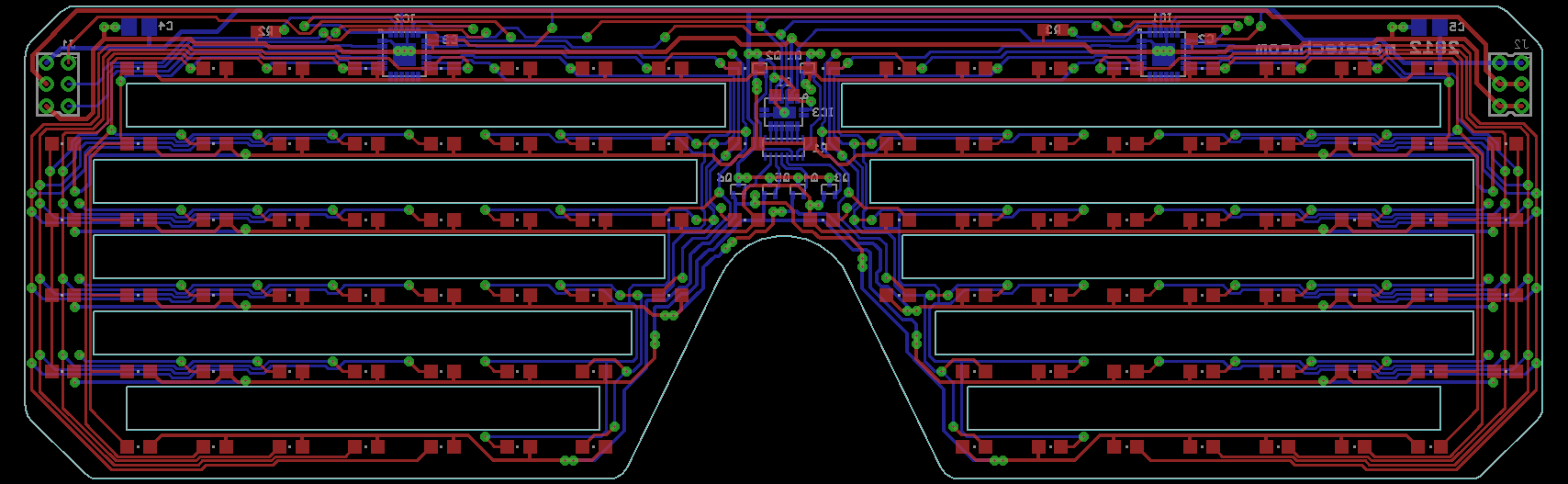 LED Shades V0.1 Open SourcedBack in 2012, in the few weeks preceding Maker Faire Bay Area, I was excited about a new secret project. We had the macetech LED Lounge again, but this was a way to take the party with you. Wearable LED slotted shades with a built-in Arduino-compatible controller! ![]() They were a huge hit, both at Maker Faire Bay Area and Maker Faire New York. It was impossible to walk down the street in Manhattan without getting comments and questions every few seconds. ![]() However, the first LED Shades were nothing more than prototypes. They were hurriedly designed. Didn't have much resolution, didn't have folding hinges or cables with connectors, the battery was taped onto the side, and so on. The biggest problem was one that didn't show up for months, but claimed all but one of our prototypes (which still works to this day). The problem was that the LED driver ICs along the top edge of the PCB would crack internally due to flexing stress while being worn. This led us to develop the new LED Shades (available now at a deep discount), which used much smaller driver ICs, relocated them to a stiffer part of the PCB, enhanced the resolution and brightness control, added hinges and flexible cables, etc. The new design has had its own share of problems, but due to outside influences (stock levels, manufacturer capabilities) instead. The first design does have a lot of appeal, though. As opposed to the new design, which requires a 4 layer PCB, the first design worked on a simple 2 layer PCB. Control was very simple through a set of shift registers, whereas the new design uses driver ICs with a very complex I2C protocol. And the first design was much easier to build in a home electronics lab, while the new design uses BGA chips and requires careful solder stencil and reflow work. ![]() Still, we're probably not going to continue developing this design. I think a lot of the problems can be solved, but we have other designs to improve first. So we've decided to put the design files out there under an OSHW-compatible license, for anyone to examine, modify, try out, whatever. Without further ado, here are the links: Full design file archive (CadSoft Eagle 5 and up): LEDShadesV0.1.zip The design uses this battery from Sparkfun: https://www.sparkfun.com/products/10718. However, other similar batteries could be used by leaving off the JST connector and just soldering the wires in place. The board uses the FT230X USB-serial converter and as such requires up-to-date drivers from FTDI. And in the Arduino environment, the board should be selected as the Arduino Pro Mini with ATmega328 running at 8MHz on 3.3V. If you use the TI part rather than the Allegro part...we found the Allegro part to be a little less troublesome. Also note that the TI pinout is rotated 90 degrees from the Allegro pinout! It'll work, you just have to turn the chip to match. However, I'd recommend not using these parts without reinforcing the top part of the shades to prevent flexing. If you find this design useful, please let us know! We'd be happy to post any success stories, either from improved versions of this design, or just something you borrowed from it. And of course, if you just want to skip to the part where you have cool Arduino-compatible LED Matrix Shades right now...we've got you covered: LED Matrix Shades in the macetech store.